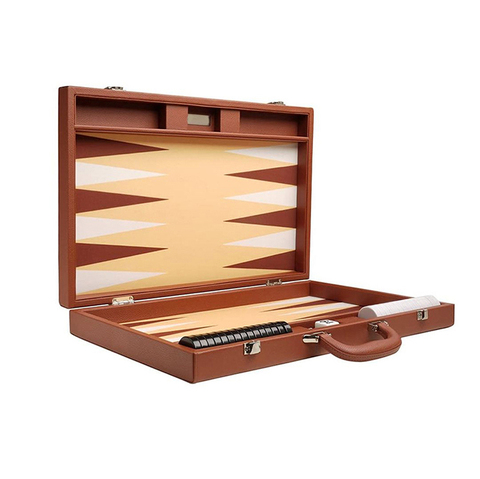 Juego de backgammon profesional de cuero marrón, juego de lujo hecho a mano